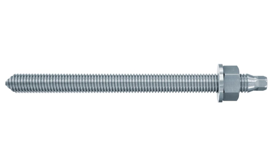 The fischer rod anchor RG M is made of zinc-plated steel with a grade of 5.8. The anchor rod is a systems accessory for various fischer mortar cartridges or injection mortars. Application with pre-portioned mortar cartridges is especially cost-effective for individual fixings. During mounting with the resin capsule, set the fischer anchor rod RG M through rotating and hitting motions with a hammer drill. The capsule is destroyed during the setting process, which mixes and activates the mortar compound. During mounting with injection mortars, the anchor rod is pushed into the drill hole manually by lightly rotating it. The system is particularly suitable for cost-effective fixing of machines, steelwork constructions, and supporting feet in internal areas