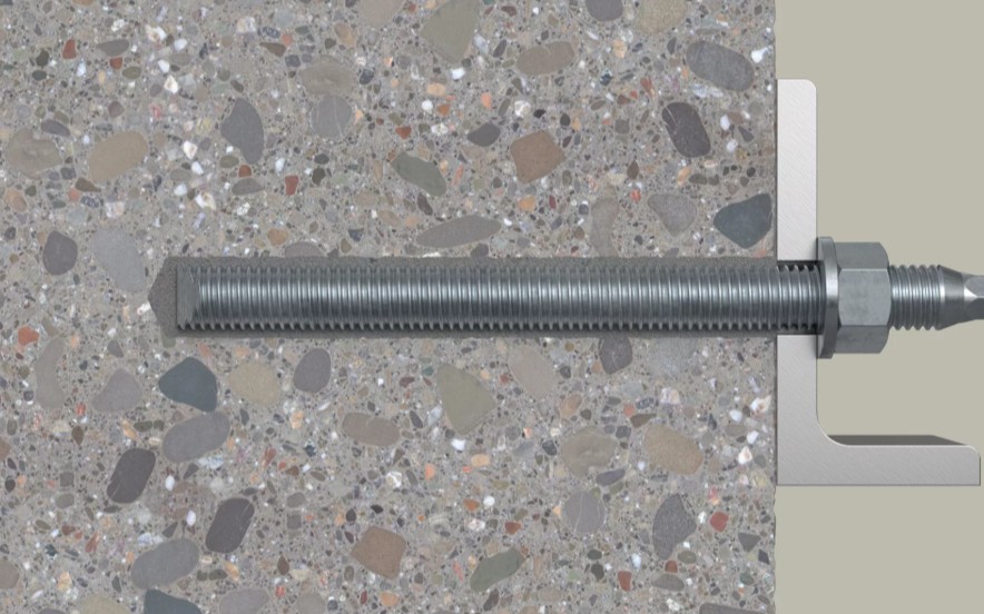 • Anchor rod with oblique edge and hexagon for simple installation with pre-portioned injection cartridge.